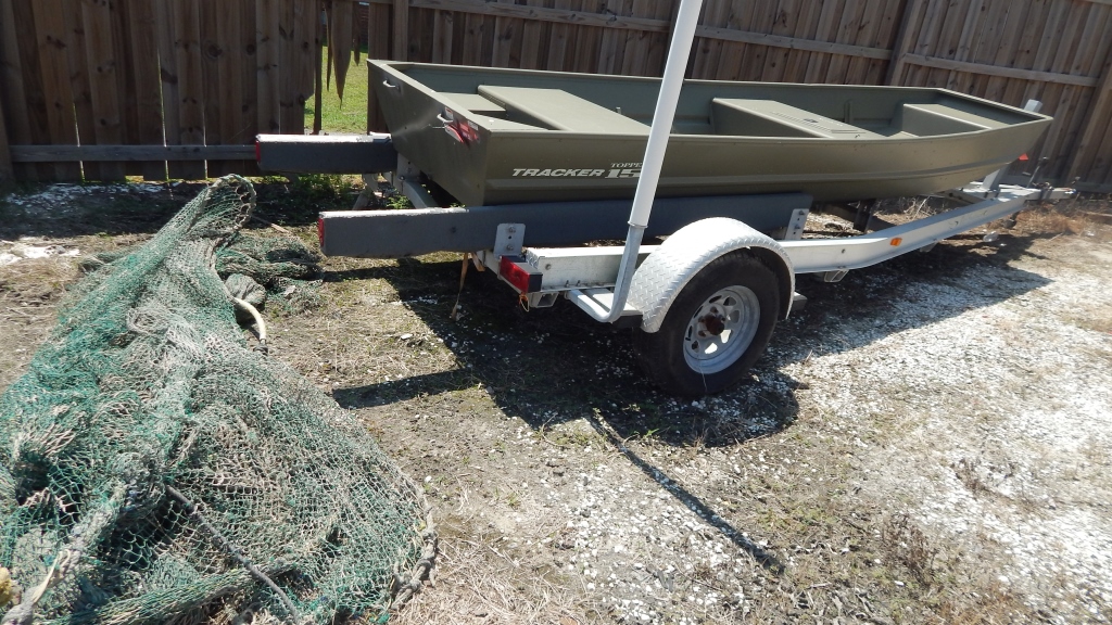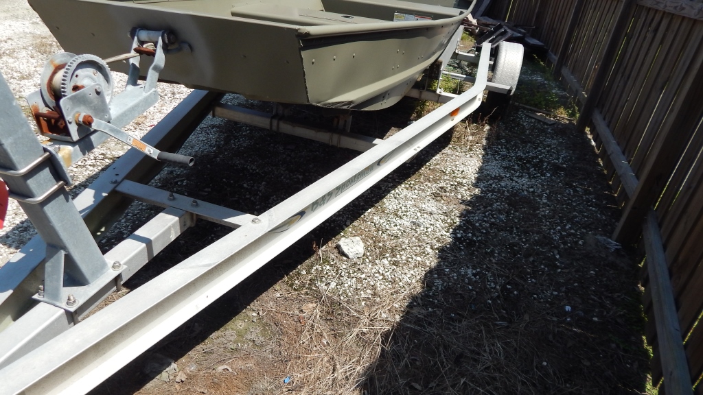 PICTURE IS OF BOAT AND TRAILER. IN THIS LOT IS TRAILER ONLY. Boat is in lot #9304. B & J Sportsman aluminum boat trailer. Total length of trailer from tongue to rear bunk is 24 feet. This lot is trailer only with bill of sale. Sold as is. This lot is located at 512 Jones Avenue, Tybee Island, GA 31328. Preview day is Monday, September 29th from 1 to 3 pm. This address is where you will preview and pickup this item. Any invoices over $500 will be required to be paid by cash, certified funds, or wire transfer. Pick up by appointment only. Call Low Country Auction, to make appointment. 912_764_9265