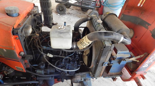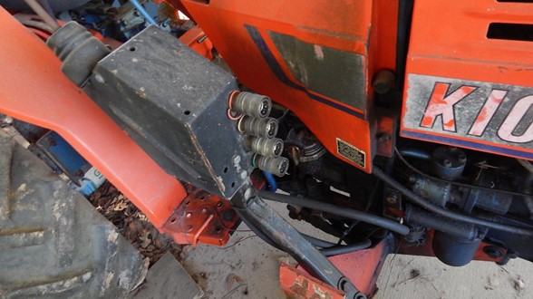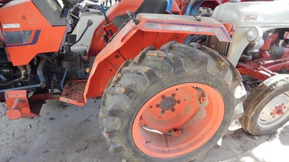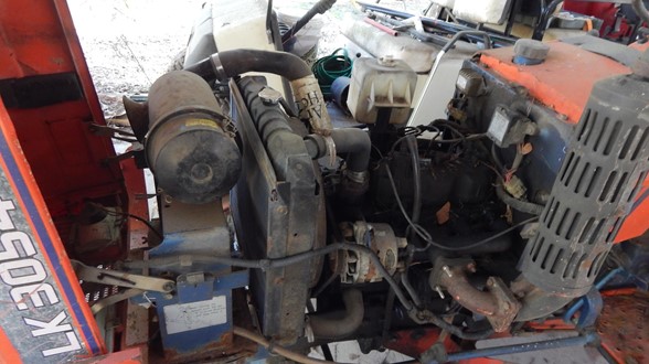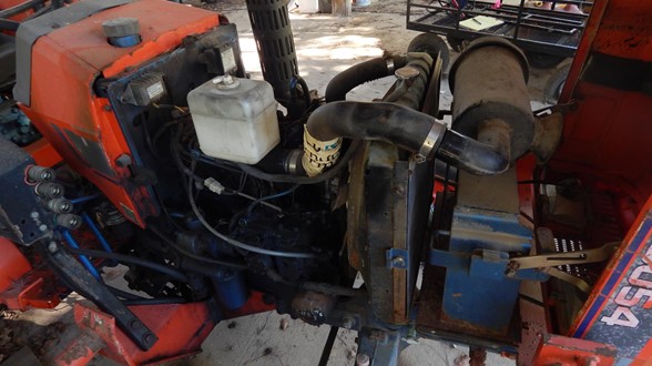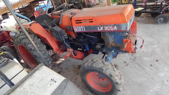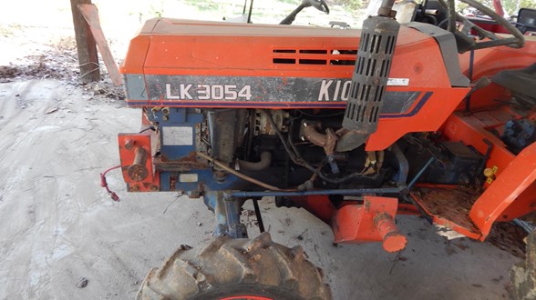 Kioti LK3054 4WD Serial: 526500372 tractor. Hood has some damage and tractor does not include a battery. Tractor has Hydraulic remotes and control for front loader. Loader not included. Working condition unknown. Buyer is responsible for loading. Sold as is.