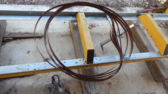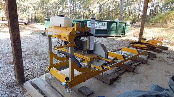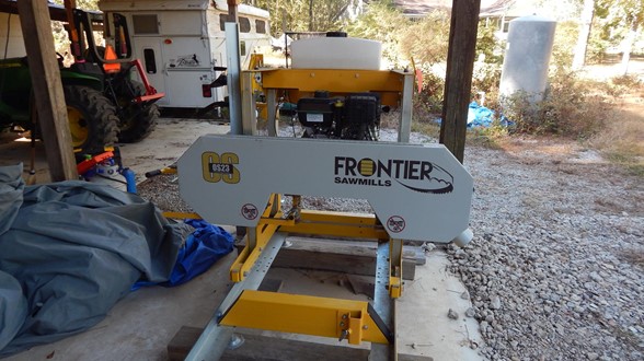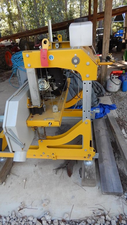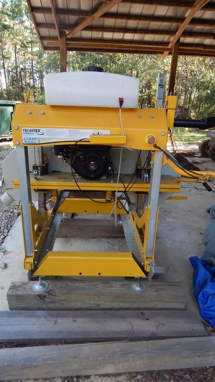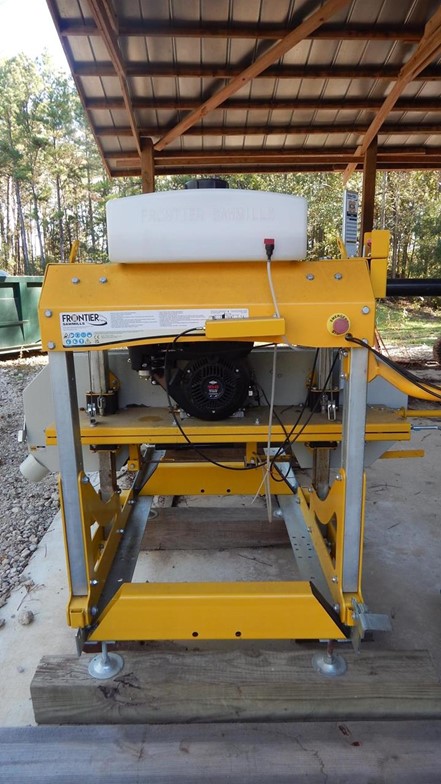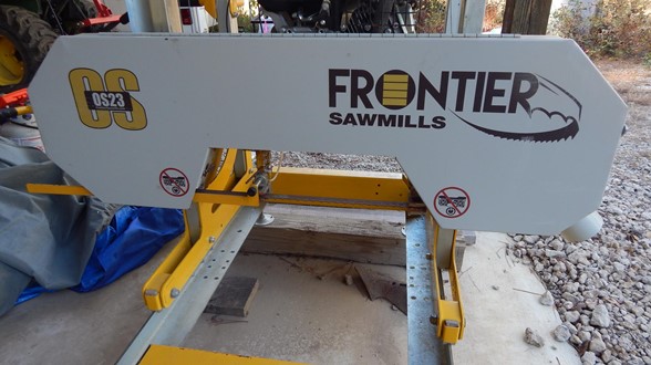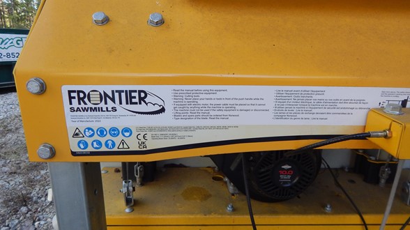 2022 Frontier Sawmills model 0S23 portable sawmill. Powered by Briggs & Stratton 10hp 306cc gas motor. Includes log roller and 9 blades. 23" max log diameter 20" max cutting width with 11' maximum log length. Mill has auto-locking saw head and EZ Blade tension system. Working condition unknown. Buyer is responsible for loading. Sold as is.