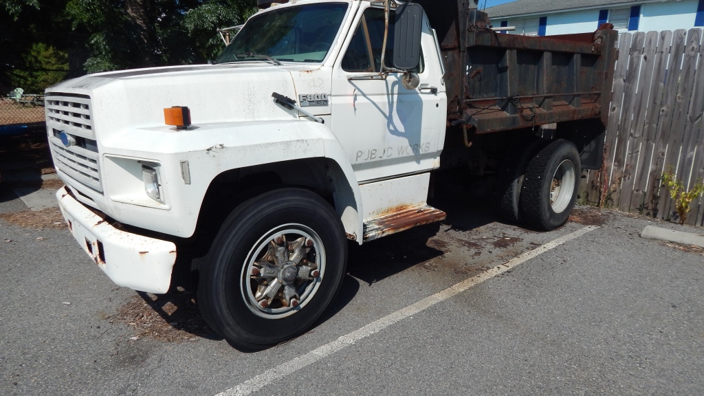 1994 Ford F800 Dump Truck, VIN #1FDWK84E3RVA25608, 44,898 miles, 5 speed manual transmission, diesel engine. According to Fleet Technician the battery needs replacing. Please note that the dump body was excessive rust. This vehicle is sold as is. Working condition unknown, unable to test. This lot is located at 78 Van Horn Avenue, Tybee Island, GA 31328. Preview day is Monday, September 29th from 1 to 3 pm. This address is where you will preview and pickup this item. Any invoices over $500 will be required to be paid by cash, certified funds, or wire transfer. Pick up by appointment only. Call Low Country Auction, to make appointment. 912_764_9265
